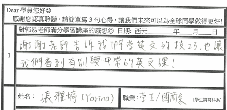 2014七月教育部主辦【郭易老師教你超越所有字典變身英文倉頡講座】感謝全國各地學生感想◎之前都沒看過的驚人教學/深受感動/我上過無數老師的課郭易老師讓我有全新感受/學到許多在學校無法得知的奧秘跟知識/非常學術詳細有條理/非常有用有趣收穫滿滿
